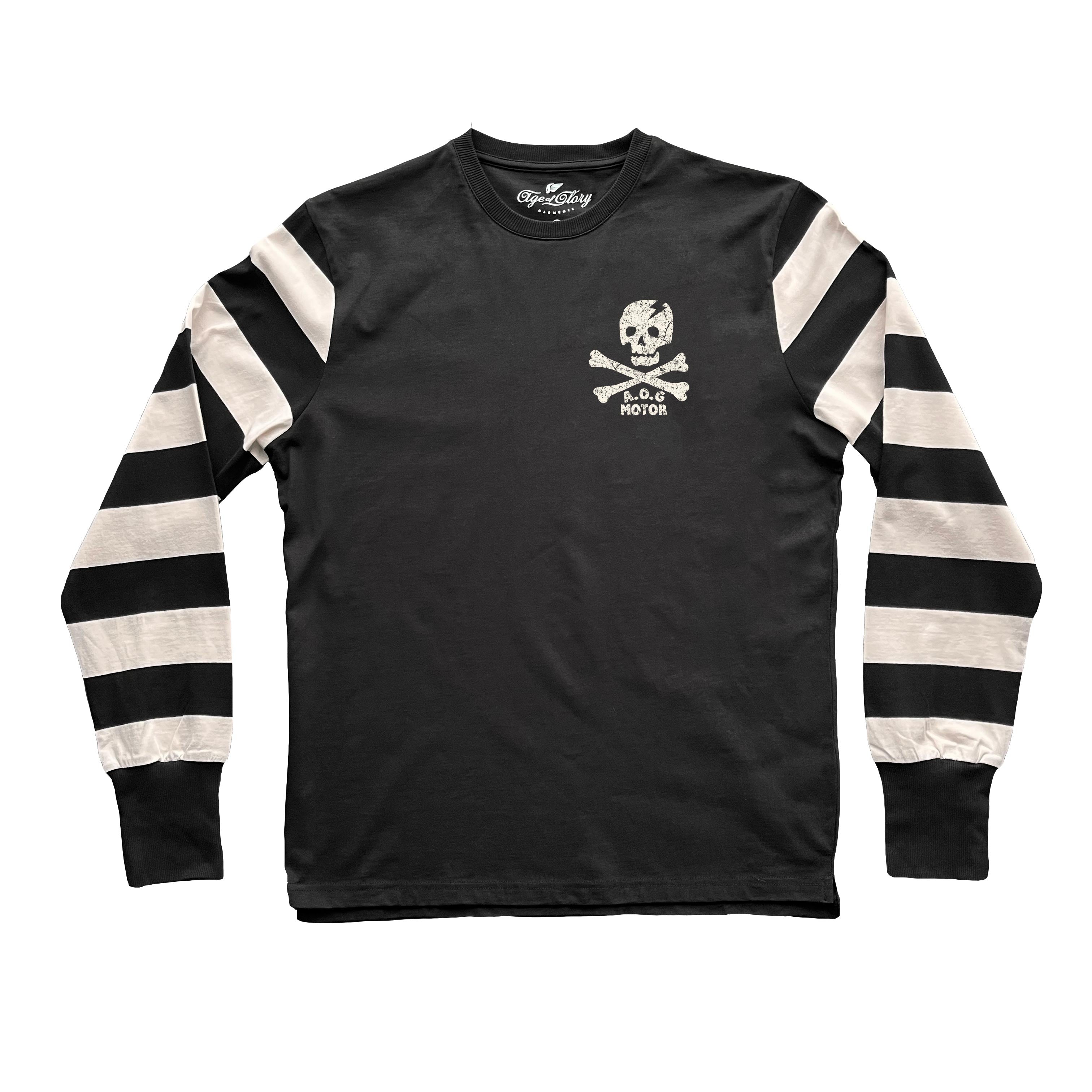 Arborant notre crâne de pirate vintage sur le cœur, ce t-shirt à manches rayées est un classique : un style intemporel et un look à porter en toutes circonstances.
